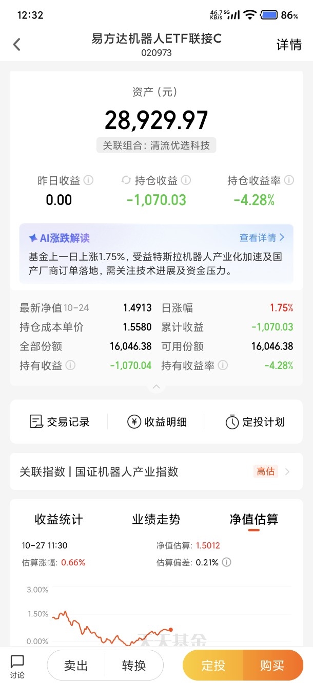 $易方达机器人ETF联接C$#晒实盘#@易方达基金 $易方达机器人ETF联接A$