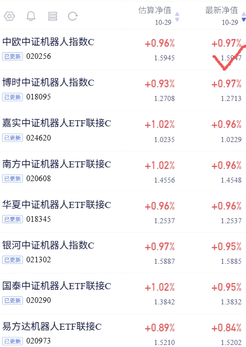 最近的机器人表现还是不错。已经走出了稳定上涨的突破步伐!$中欧中证机器人指数发起C$ 今天上涨了0.97%。同类机器人基金再次做到了领涨,紧密跟踪中证机器人指数,长期同类做到了优秀。还稳定跑赢了指数的涨幅。期待四季度继续突破。