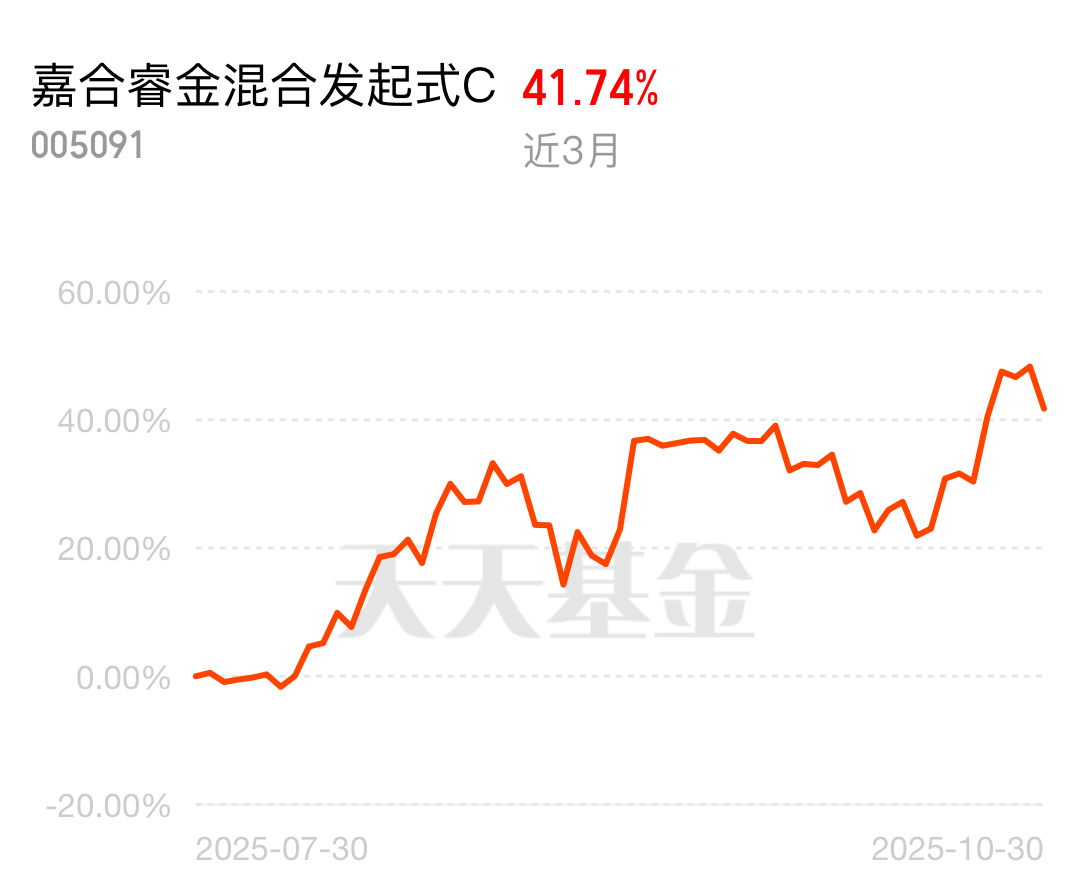半导体板块受捧,CPO和存储芯片最亮眼。嘉合睿金混合C踩准,近三个月41.47%,一周10个点赚了。$嘉合睿金混合发起式C$