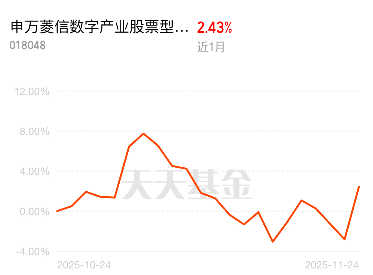 科技赛道近期一路高歌,计算机板块作为核心力量,尾盘强势大涨,数字产业同步涨了5个多点。申万菱信数字产业股票A主题明确,专做计算机软件相关布局,今天冲进涨幅榜前3,近1个月涨了2.43%,跟着趋势走准能吃肉。
