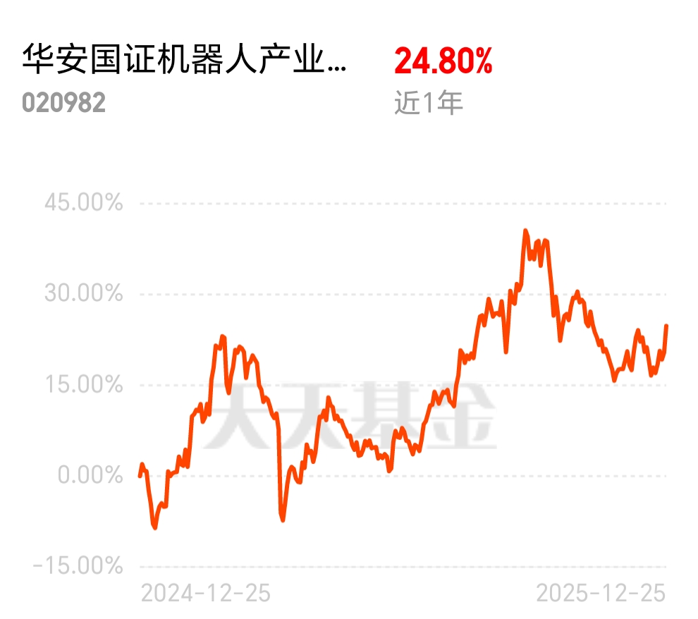 $华安国证机器人产业指数发起式C$ 双优表现,单日涨 3.65%、近一年收益 24.80%,短期反弹动力足,长期成长底气够,果断加仓不犹豫
