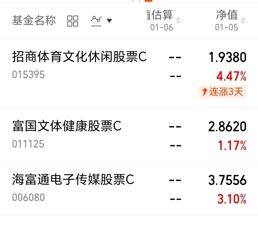 $招商体育文化休闲股票C$ 昨天上涨4.47%;