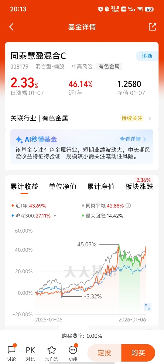 白银有色行情强劲,矿产银品位持续下降推升成本。同泰慧盈(008179)今日大涨2.33%,是全市场唯一专注白银的基金,贴合成本支撑逻辑,个人看好这个选择。$同泰慧盈混合C$