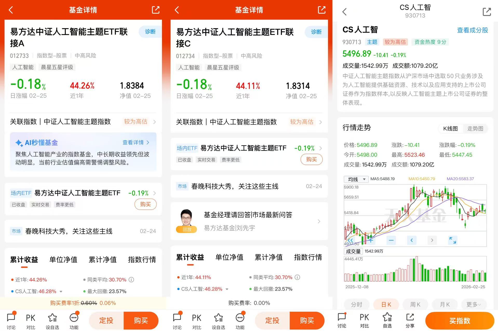 $易方达中证人工智能主题ETF联接A$ $易方达中证人工智能主题ETF联接C$