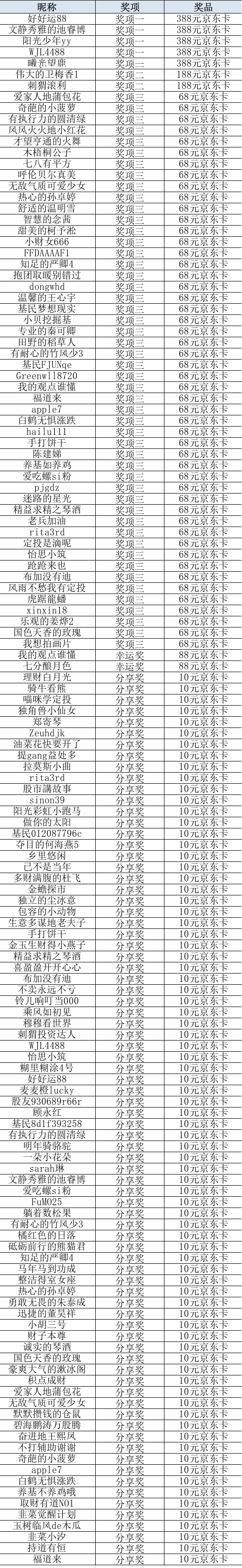 为回馈小伙伴们的热情,现根据活动规则公布获奖用户名单: