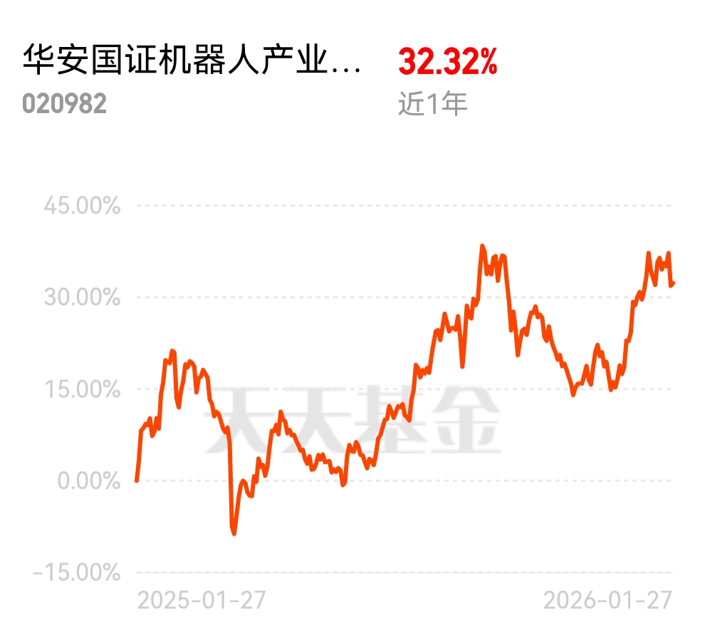 华安国证机器人指数C最新净值1.5168日涨0.32%,近一月涨7.70%近一年32.32%,锚定机器人产业主赛道!