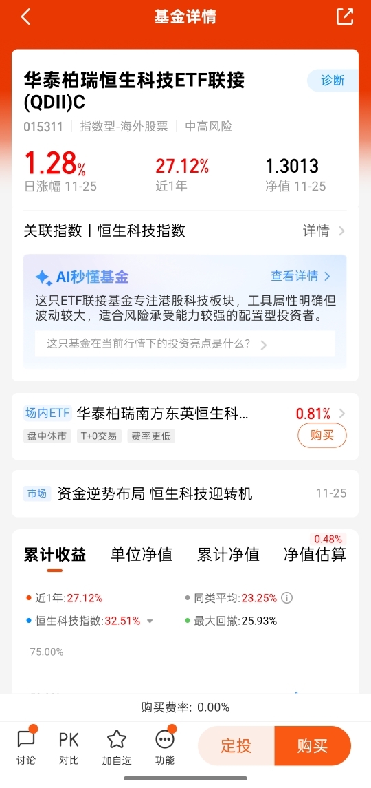 $华泰柏瑞恒生科技ETF联接(QDII)C$ #基金经理开实盘啦#
