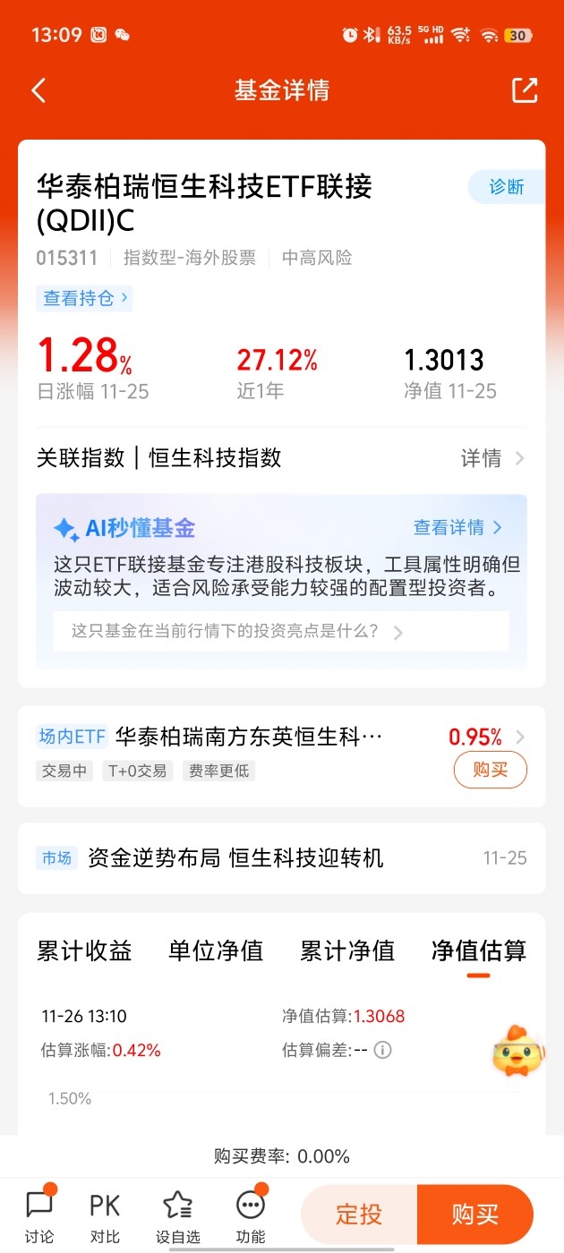 今天恒生科技反弹力度超预期,板块整体涨幅喜人,之前被套的朋友终于能松口气了。这波行情不是偶然,一方面全球科技浪潮袭来,AI、大数据这些领域发展得如火如荼,恒生科技里的好多公司都深度参与其中;另一方面,港股市场的流动性持续改善,资金面越来越宽松,加上公司业绩回暖,多重利好叠加,上涨动力很足。想抓住这波机会但又不想承担个股风险的话,华泰柏瑞是个不错的选择,它紧跟恒生科技的走势,覆盖了互联网、科技硬件等多个优质赛道,基金经理经验丰富,能帮咱们专业把控方向,普通投资者用少量闲钱就能参与,性价比超高。#谷歌发力AI CPO暴力拉升# $华泰柏瑞恒生科技ETF联接(QDII)C$
