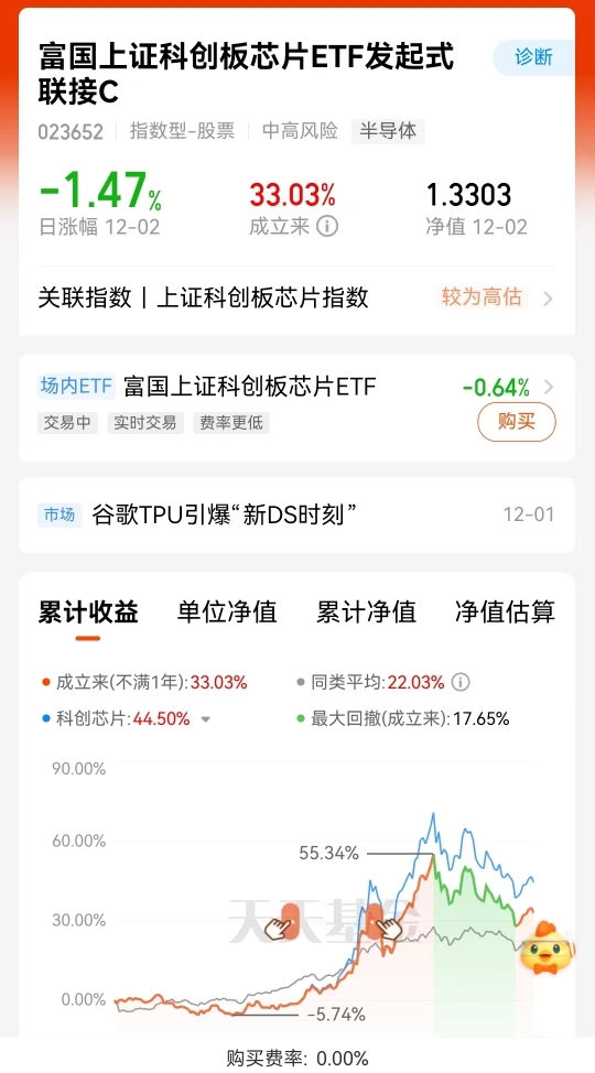 这阵子恒生科技没动静,就多看了眼芯片这边富国上证科创板芯片ETF联接C聚焦AI算