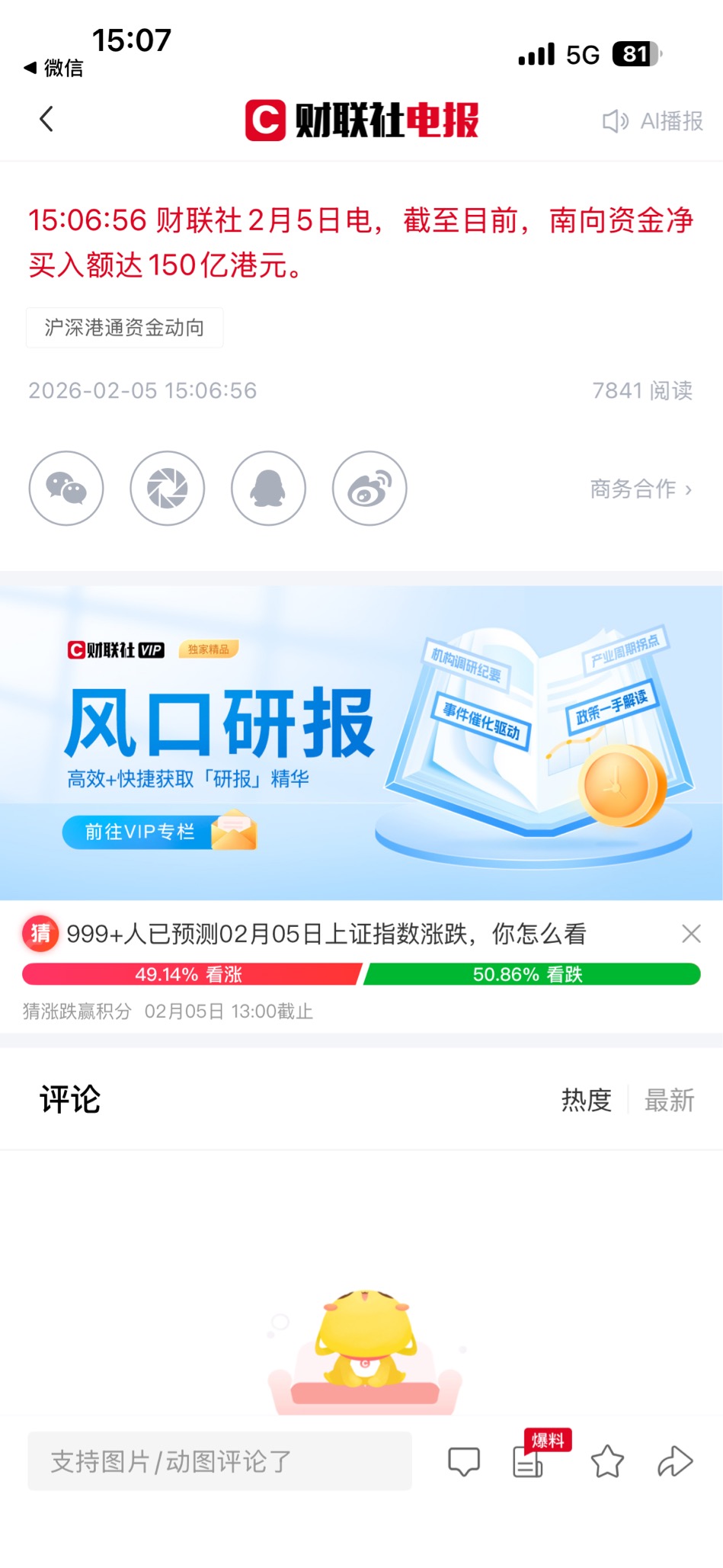 跌太多了,今天又难得一见南下资金比较大的买入。不容易。
