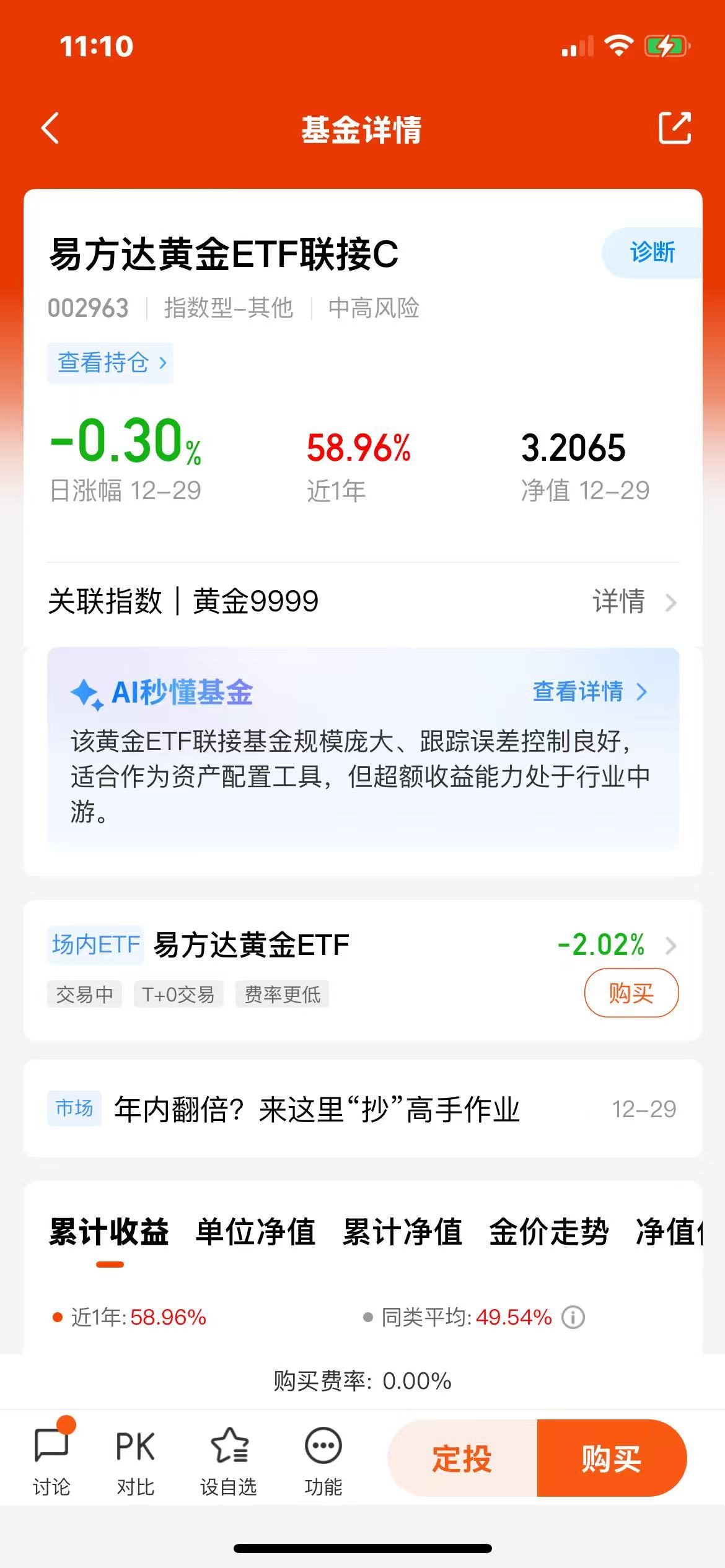 正好这支持有的仓位不大,接下来就是加仓这支!$易方达黄金ETF联接C(OTCFUND|002963)$