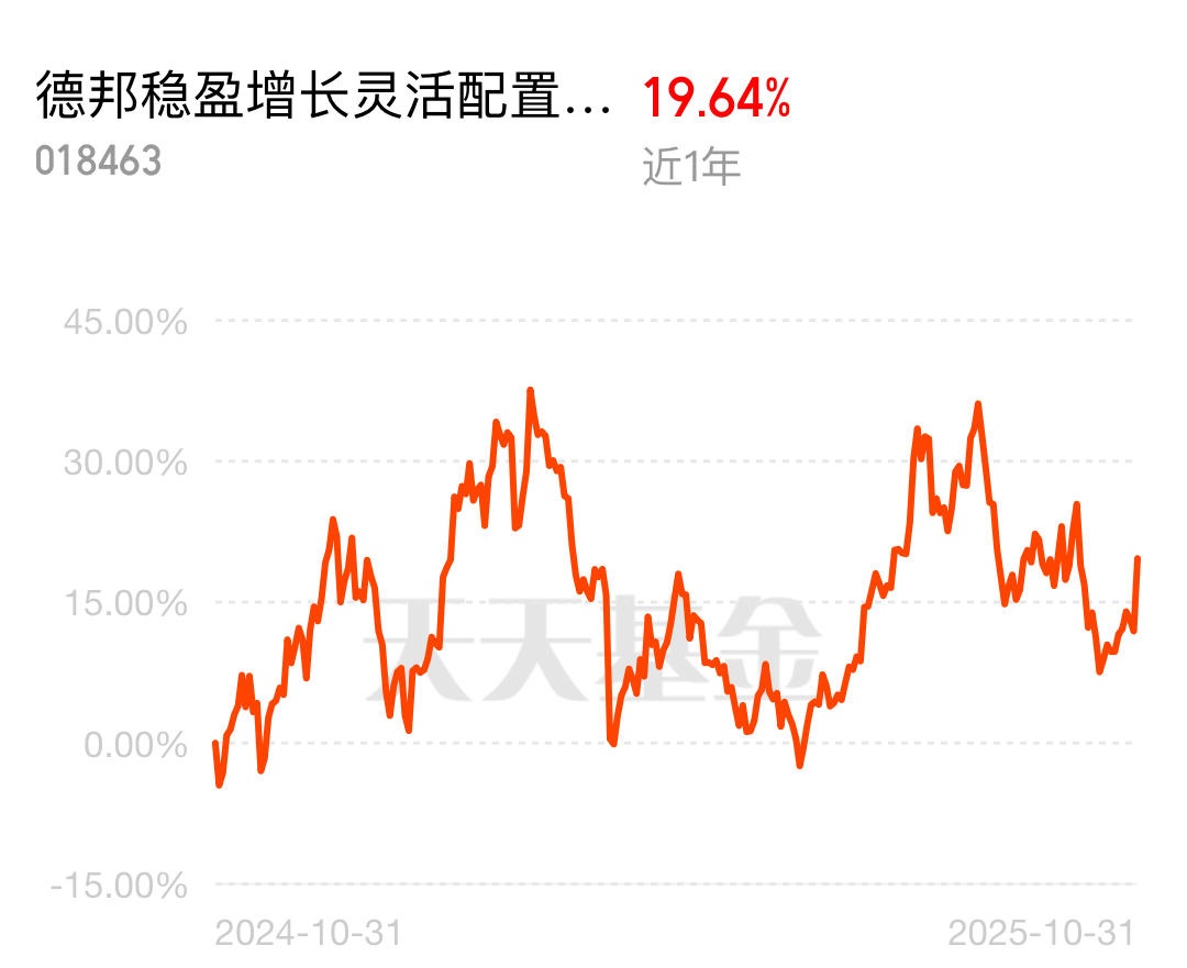 这波AI应用行情来得挺及时,不少相关领域都有动静,稳赢宝宝总算熬出头。德邦稳盈增长灵活配置混合C近1年19.64%的涨幅,在行情里很显眼。