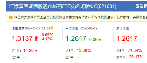 我看了眼今天的情况,中证港股通科技指数盘中涨超3%,继续跑赢恒生科技。其中,$汇添富国证港股通创新药ETF发起式联接C$ 盘中预估4.12%,今天港股创新药大涨,所以恒科表现相对偏弱。话说回来,现在医药估值相对很低,优质的创新药龙头都是在港股上市,搭上AI快车以后,近期近期复苏明显,KK小加了点港股基金,本想着今天惯性下跌时再大幅低吸的,没想到啊又没给机会,拒绝下跌完全不给低吸机会啊,我打算今天小追一些,后续有机会还会继续跟。