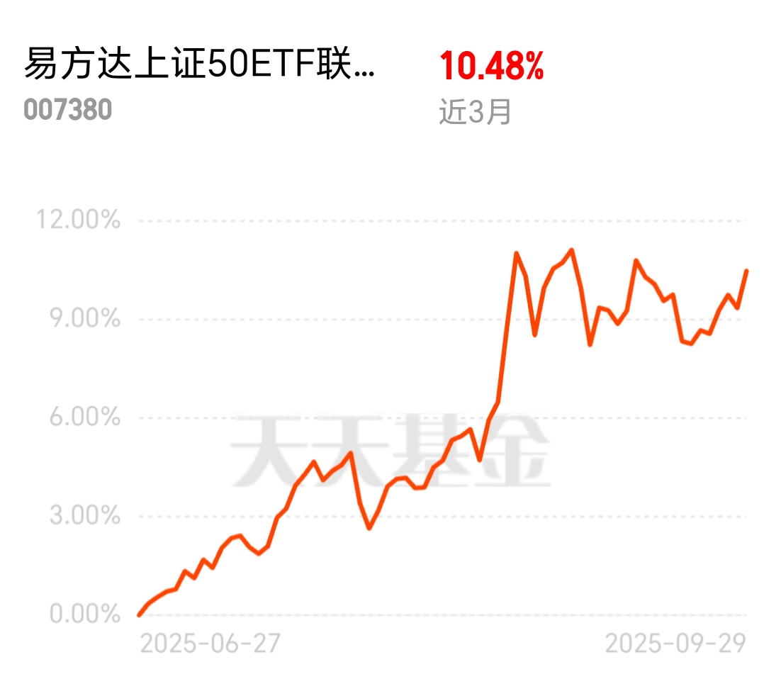 成长股现在确实能赚钱,但高估值就像悬着的石头,说不定啥时候掉下来。持仓得均衡,得配点大盘价值。易方达上证50ETF联接C近3个月涨了10.48%,刚好能帮你分散风险。
