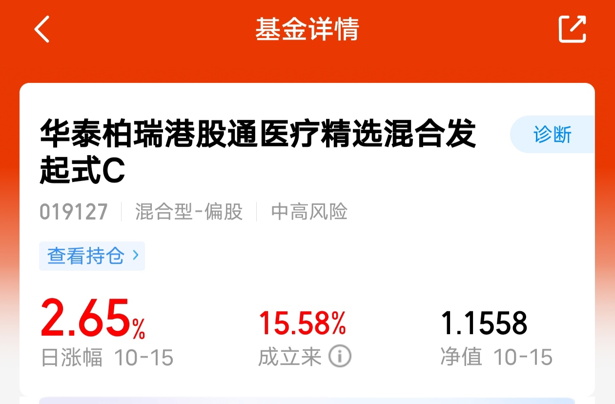 $华泰柏瑞港股通医疗精选混合发起式C$今日大涨2.65%,领跑市场。其100%投