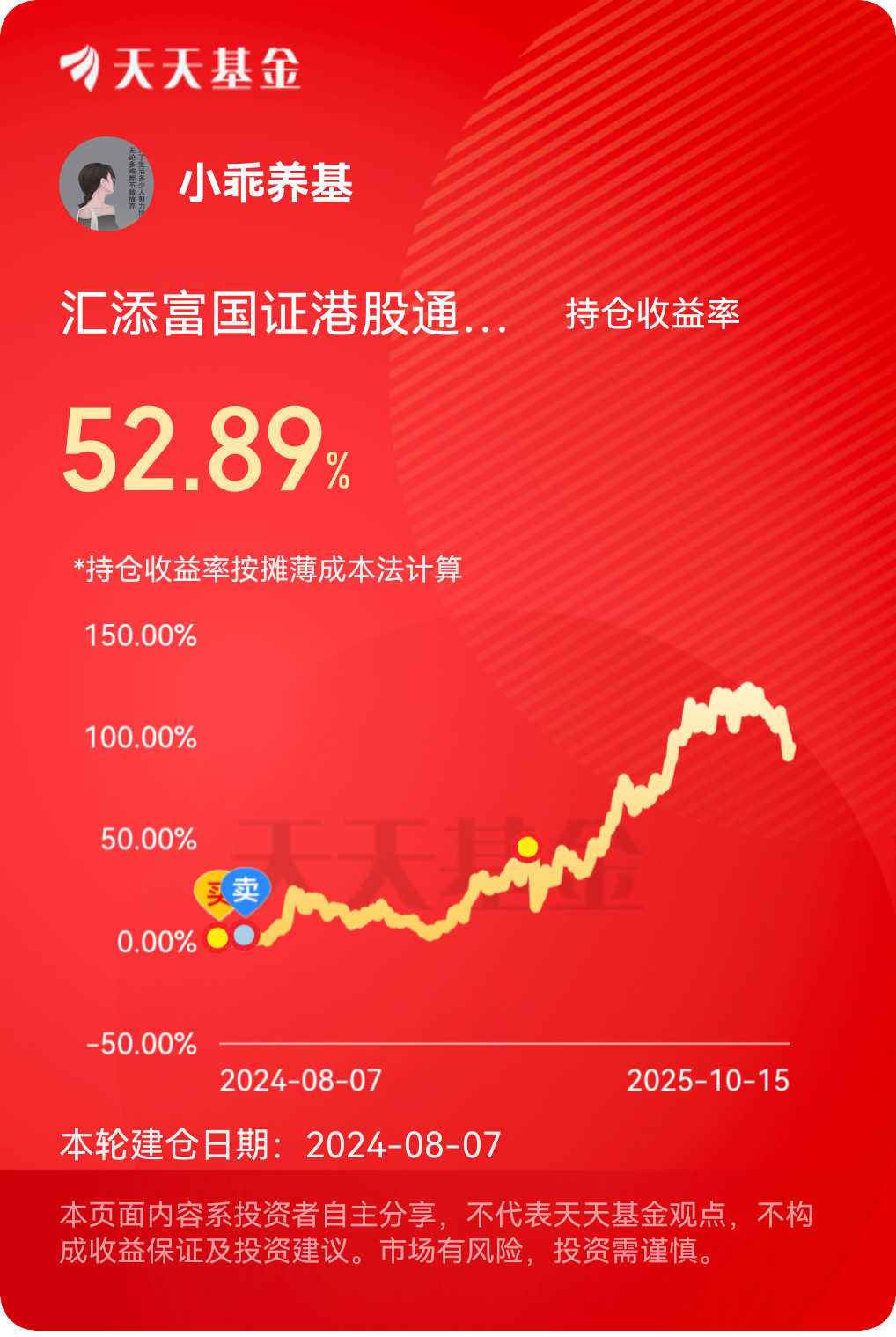 那我不等了,趁港股创新药位置还低,周末esmo大会27个临床数据报告披露也有利好,今天加6000元$汇添富国证港股通创新药ETF发起式联接C$ 这只基昨天涨了2.27%,今天继续涨超2.45%,开始领涨2市了,这只基跟踪的是国证港股通创新药ETF, 100%创新药含量,截至9月30日,前十大成分股权重高达71.83%,高纯度浓缩了港股通创新药精华,主要有信达生物、药明生物、百济神州、康方生物、三生制药等优质药企,业绩非常不错,截至2025年10月,基金成立以来累计收益超过93.63%,近六个月涨幅达46.14%,近一年涨幅达68.18%,同类平均才涨32.5%,足足高出了30多个点,排名十分靠前。