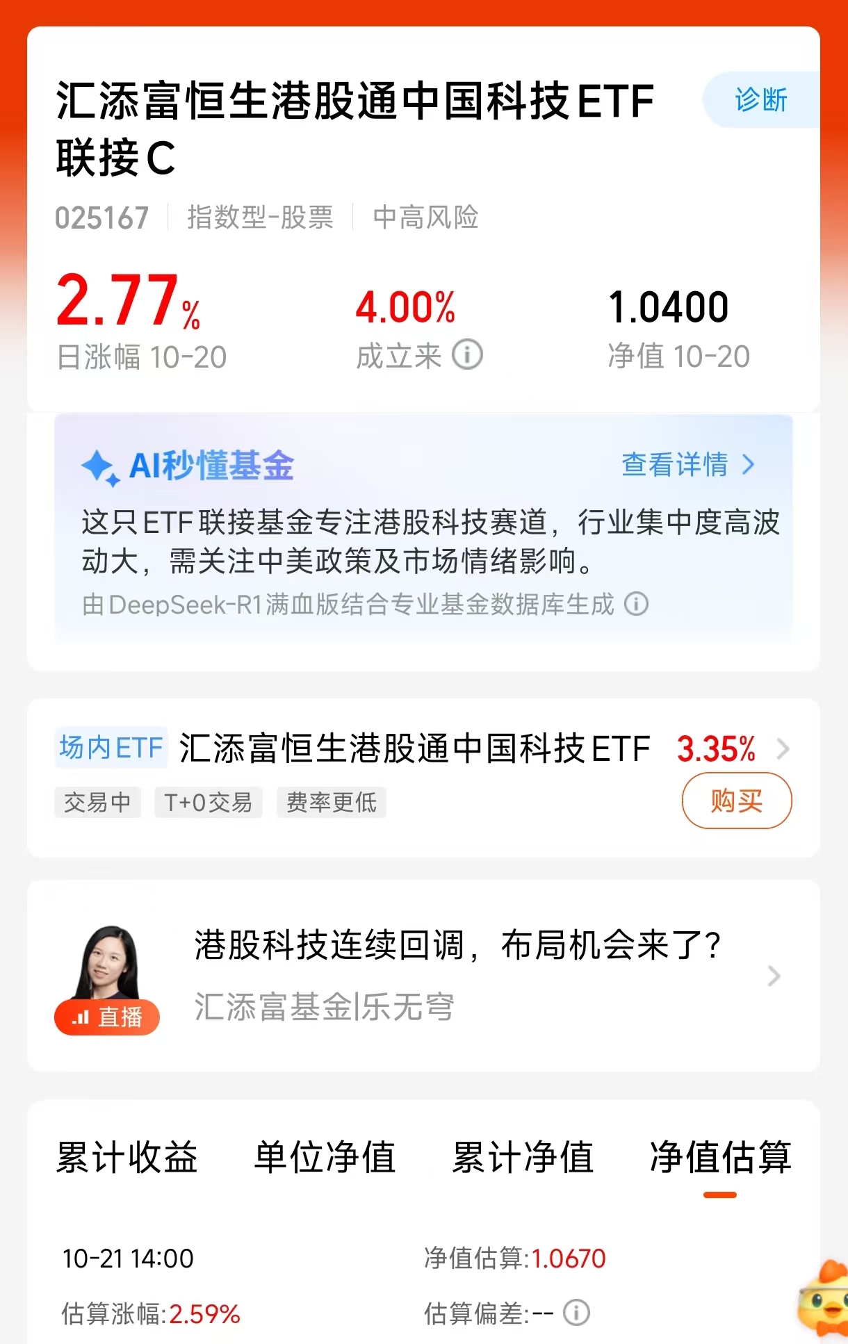 不知道大家有没有感觉,最近A股板块轮动太快了,追起来挺累。反而港股那边,之前调整了一段时间,现在看起来位置相对没那么高。$汇添富恒生港股通中国科技ETF联接C$(025167)这个基金就是投资港股科技的,算是借道参与了。而且,那边市场的资产面最近也有了些积极变化,一些外部流动性在改善。对于咱们普通投资者来说,通过这样的基金就方便多了。看好科技方向,又想找找不同市场机会的,可以多看看这类工具。#黄金暴力反弹 一举突破新高#
