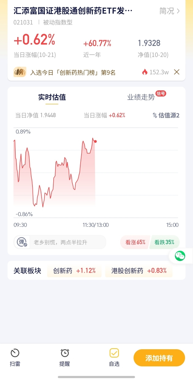 我持有的港股创新药基金涨了1.47%