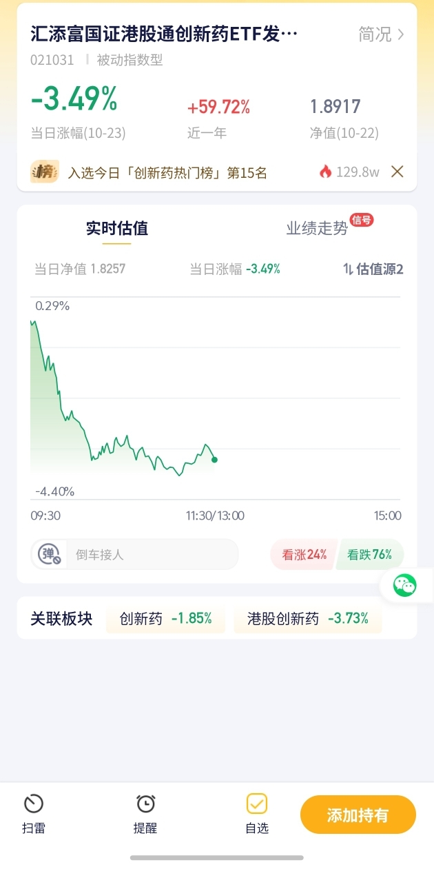 【汇添富国证港股通创新药ETF估值播报+10.23行情】