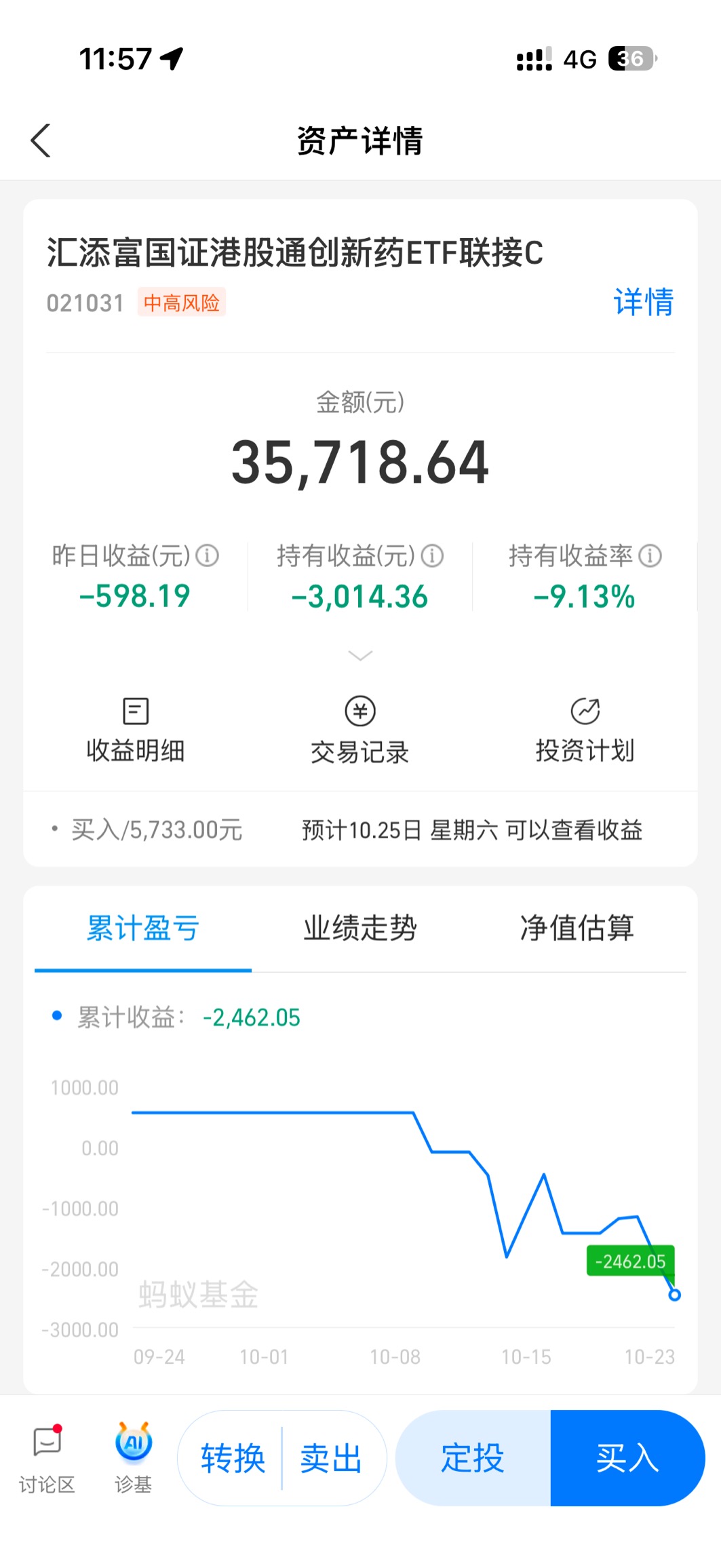 今天决定清仓了!回本无望$汇添富国证港股通创新药ETF发起式联接C[021031]$