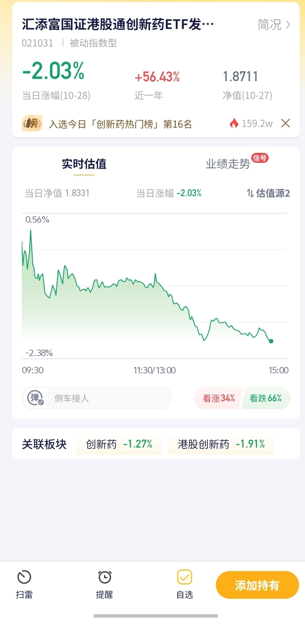 汇添富国证港股通创新药ETF今日预估跌幅-2.03%!创新药板块短期波动,行业研发进展或带来新的转机。