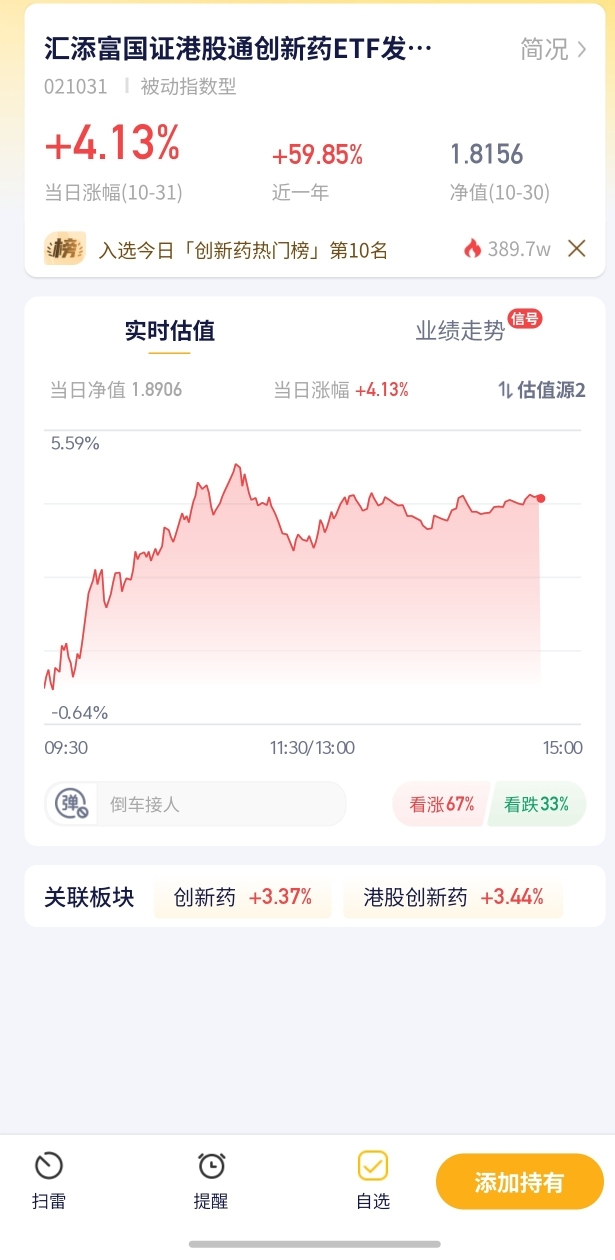 汇添富国证港股通创新药E今日预估涨幅4.13%!创新药板块表现不俗,该基金表现亮眼。