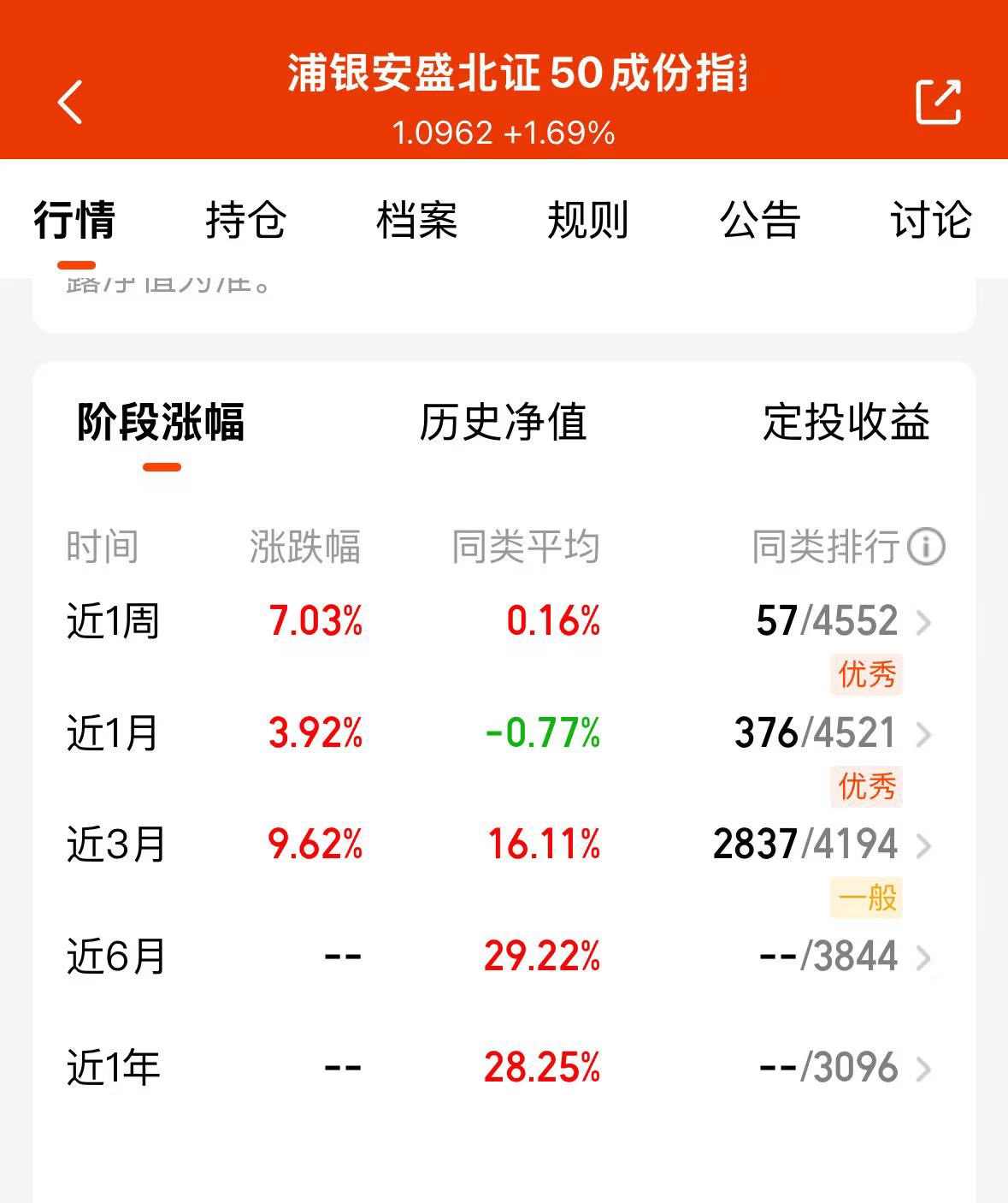 北证50基金有份额限制,大部分都限购了,不限额的$浦银安盛北证50成份指数A$跟