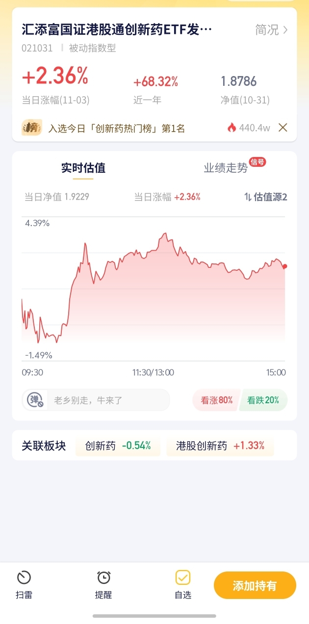 汇添富国证港股通创新药今日预估涨幅2.36%!创新药板块持续发力,该基金表现强劲,值得关注