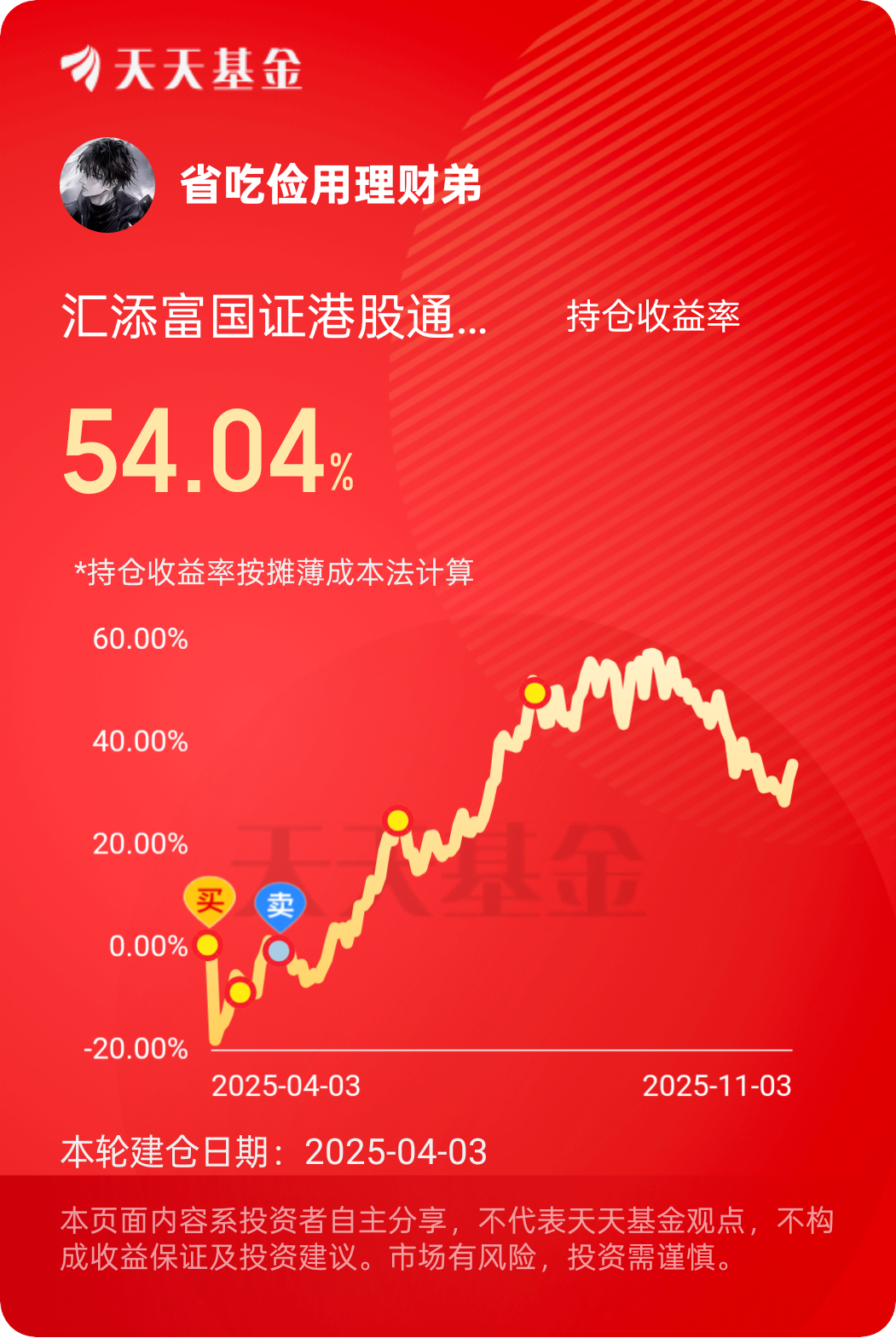 我个人比较看好港股创新药的中长期发展,所以打算继续持有$汇添富国证港股通创新药ETF发起式联接C$ 。这只基金主要投资港股创新药龙头企业,包括药明生物、百济神州、康方生物等知名企业。它的特点是很纯粹,全部仓位都集中在创新药领域,没有其他行业的配置。