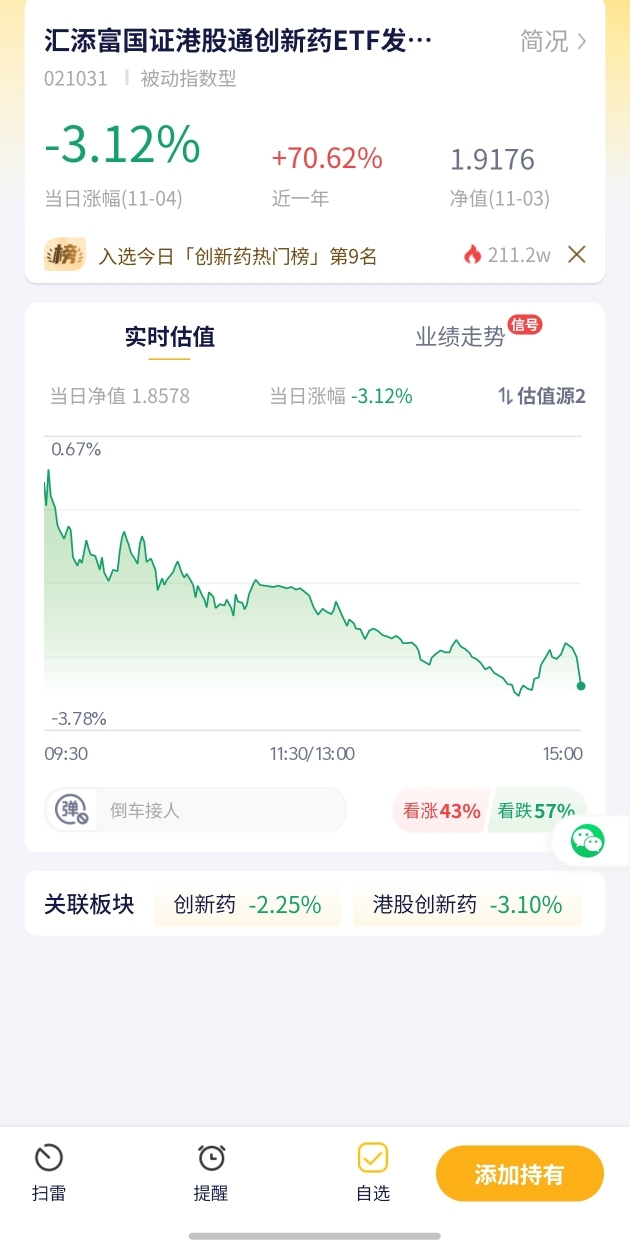 汇添富国证港股通创新药今日预估涨幅-3.12%!创新药板块回调,可关注政策和研发进展带来的机会