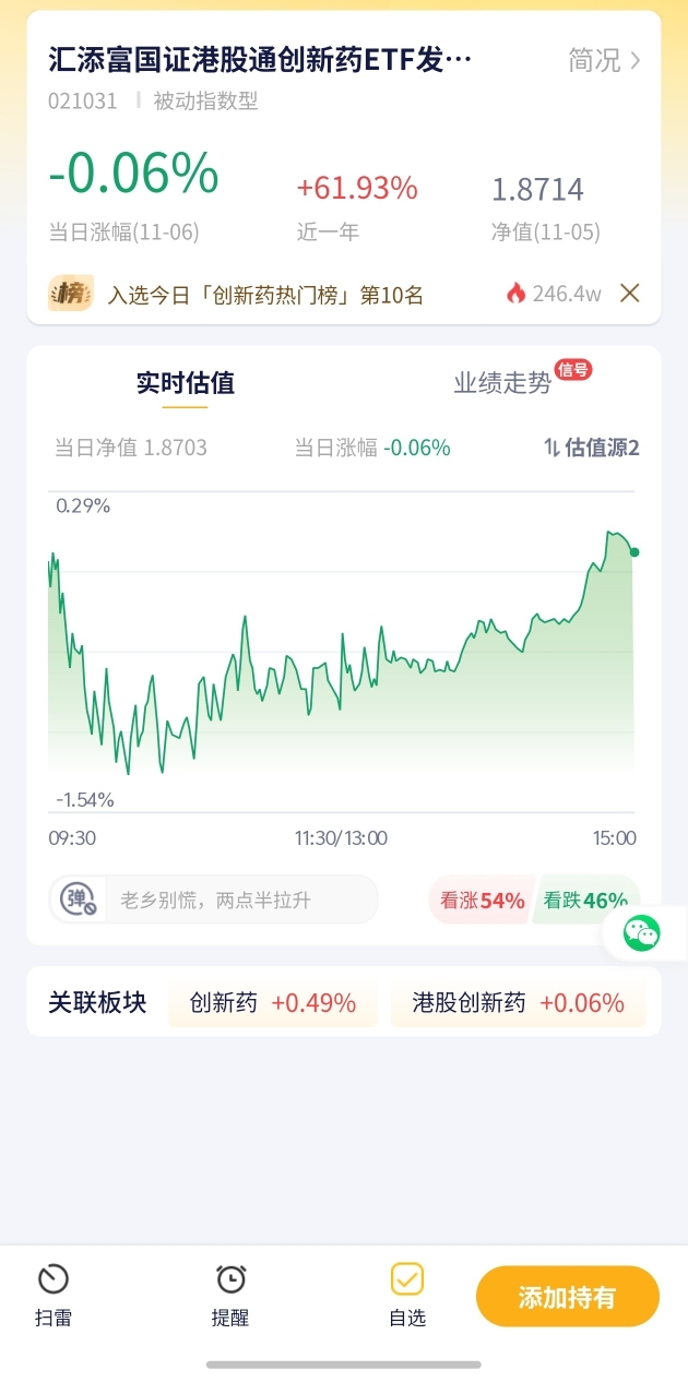 汇添富国证港股通创新药今日预估涨幅-0.07%!医药板块小幅调整,长期可期