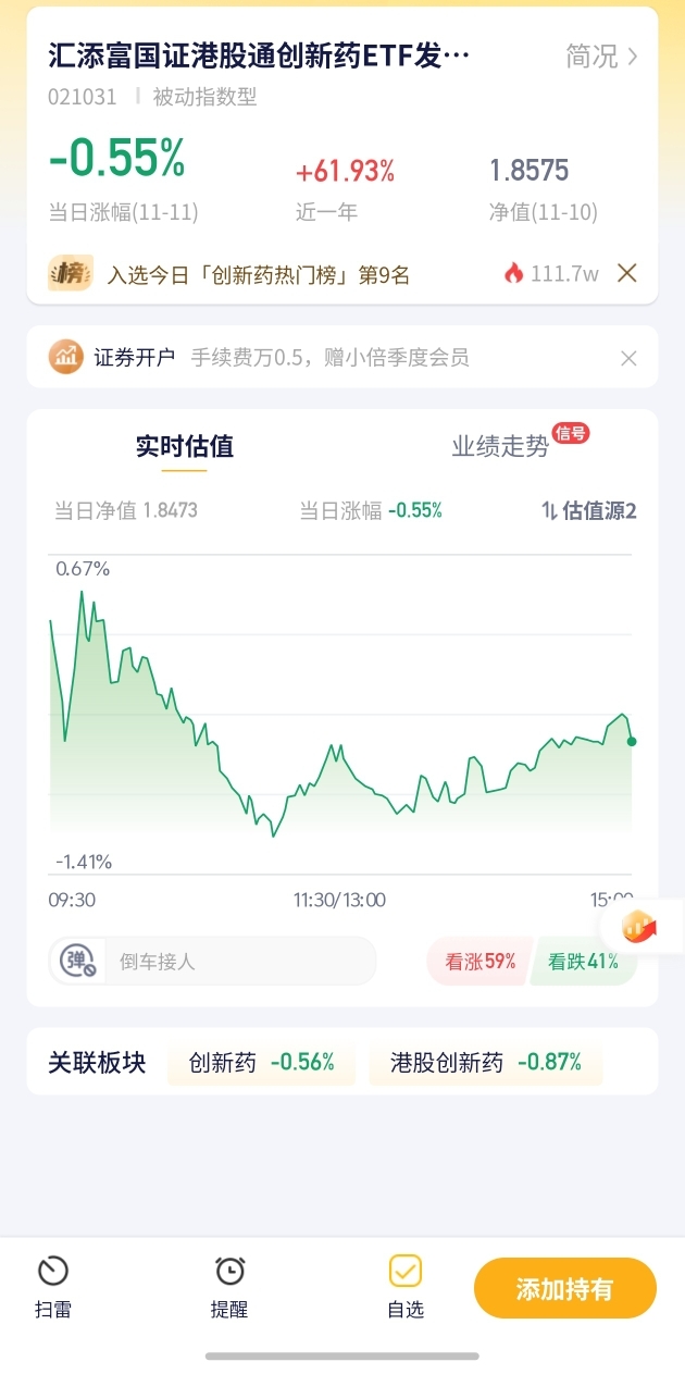 我持有的港股通创新药基金今日预估下跌
