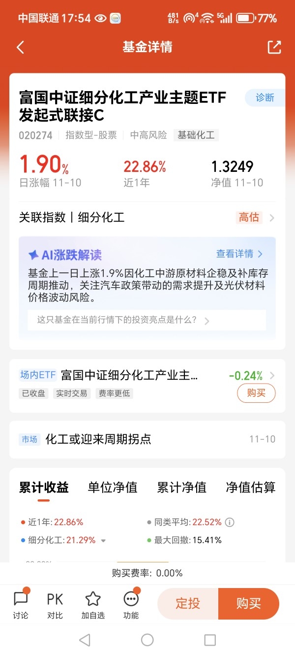 持仓汇添富港股创新药,也搭了点富国化工C近3个月涨21%,跟踪误差才0.3%,跟指数几乎同步,反应快又稳。$富国中证细分化工产业主题ETF发起式联接C$