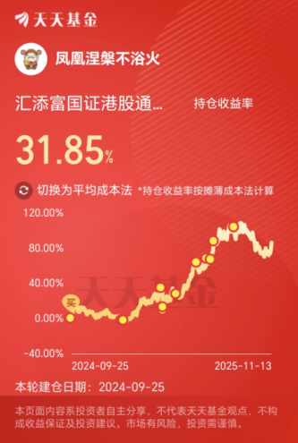 对于创新药我个人一直很看好。前期涨幅快带来风险累积是调整主因,本身行业基本面是没有变坏的。而随着秋冬季节流感季的到来,创新药明显再次受到资金青睐,找到题材发挥啦。对于创新药布局,我还是觉得要抓住港股创新药核心,毕竟港股聚集了相当一批创新药优质原研药企,A股可是买不到的哦。而汇添富港股通创新药C100%纯正创新药,我觉得还是更能把握创新药行情。经过回调,近一年仍上涨77.39%,还是非常给力的。最近调整过后性价比凸显,今天再加一笔,坐等药牛主线回归了!$广发创新药ETF联接C(OTCFUND|012738)$$银华中证创新药产业ETF发起式联接C(OTCFUND|012782)$$华安中证细分医药ETF联接C(OTCFUND|000376)$$永赢医药创新智选混合发起C(OTCFUND|015916)$$富国恒生港股通创新药及医疗保健ETF发起式联接C(OTCFUND|020111)$#创新药三连涨!医药商业狂飙##晒收益##晒操作##科技热点摊开业啦#