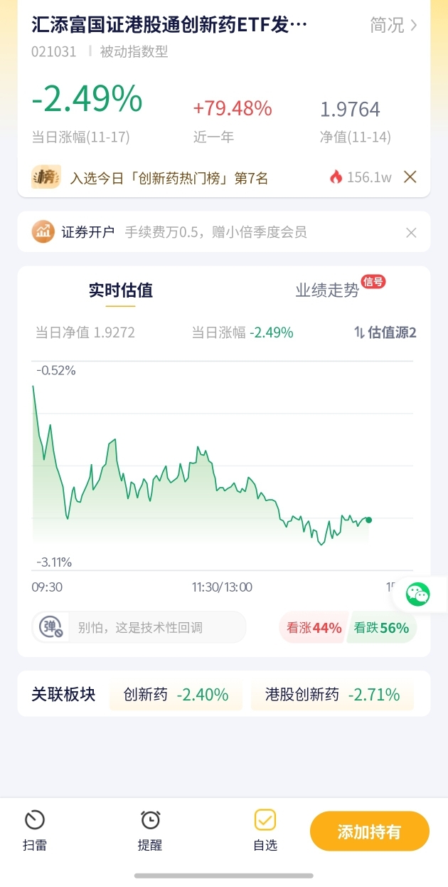 汇添富国证港股通创新药ETF今日预估涨幅-2.49%!港股创新药板块今天回调明显,基金同步调整,后续看板块回