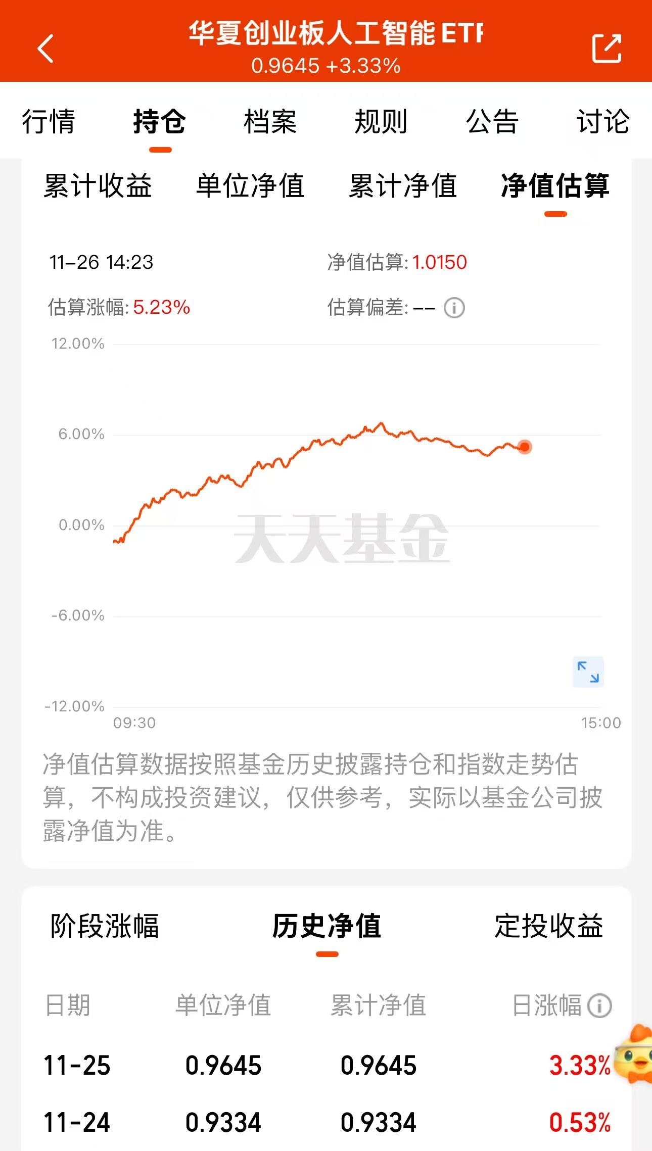业绩是持仓的第一标准,场内近半年收益同类前15名,今天上涨超5%,$华夏创业板人工智能ETF发起式联接C$持仓的个股收益能力都不错