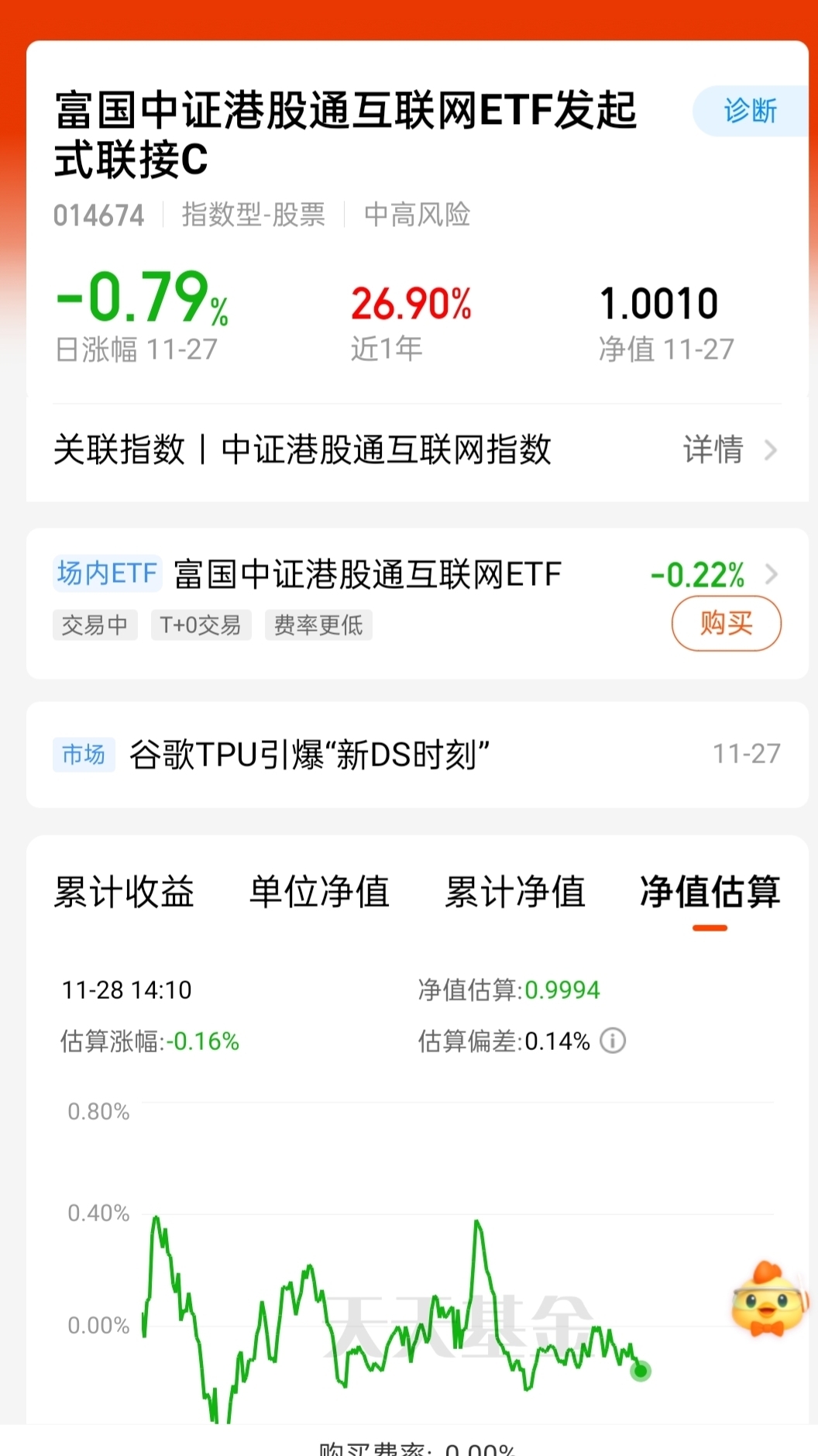 手里也在押注汇添富创新药和富国中证港股通互联网ETF联接C,后者这段时间一周涨了0.6%,跑得稳大多数同类;106亿的大盘子,跟踪港股互联网核心领域,政策暖风频吹,估值也处在低位,配置起来更安心。