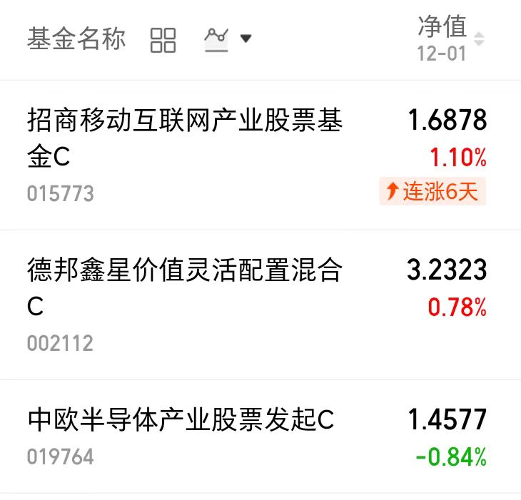 最近股市行情持续反弹上涨,科技牛行情回归,$招商移动互联网产业股票基金C(OTCFUND|015773)$深度布局电子产业链,昨天上涨1.1%,已经连续上涨6天了,业绩优秀。