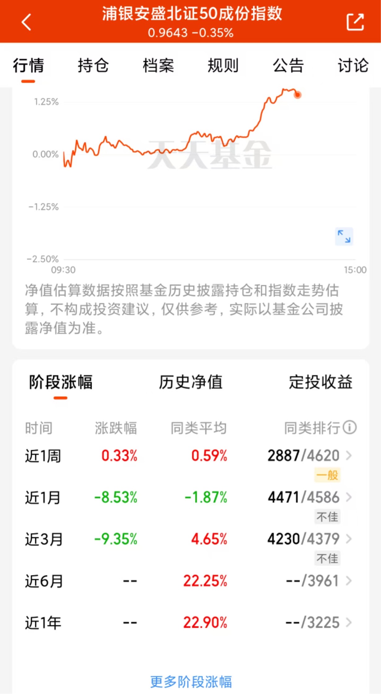 浦银安盛北证50跟踪紧密,后面额度只会越来越紧张,不限购的北证50操作起来$浦银安盛北证50成份指数C$