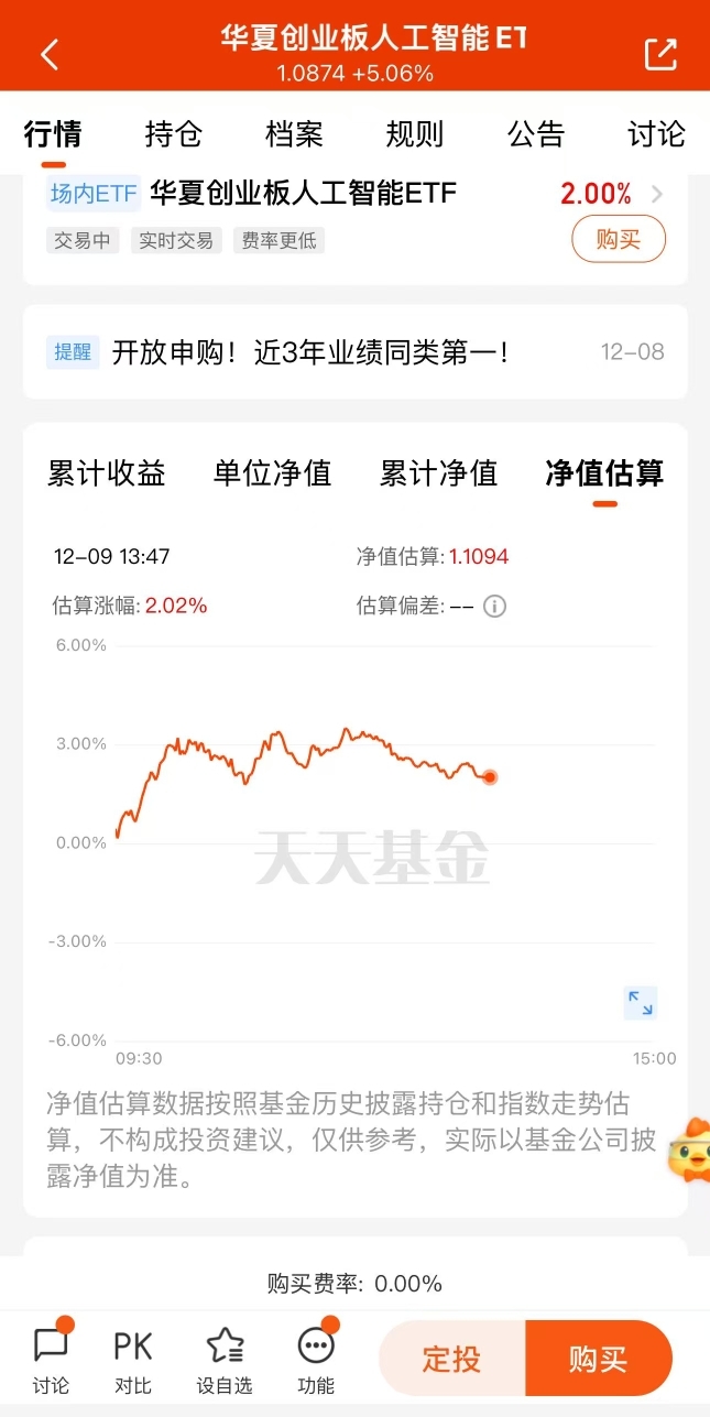 昨天强势上涨5.06%,今天继续上扬2%,$华夏创业板人工智能ETF发起式联接C$这收益冲劲很强