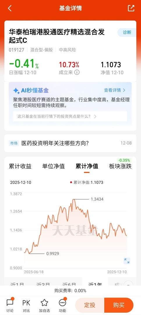 $华泰柏瑞港股通医疗精选混合发起式C$ #摩尔线程突破800元!估值逻辑是啥?#