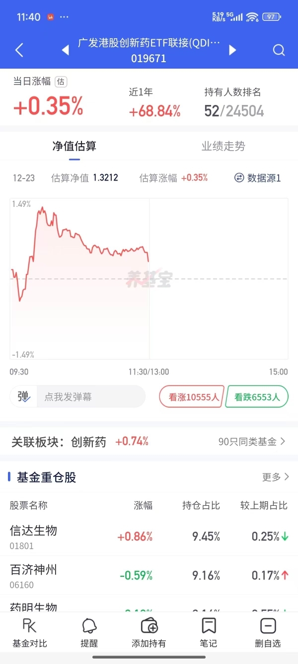 我看$广发港股创新药ETF联接(QDII)C$弹性还不错,盘中涨了0.35%,近