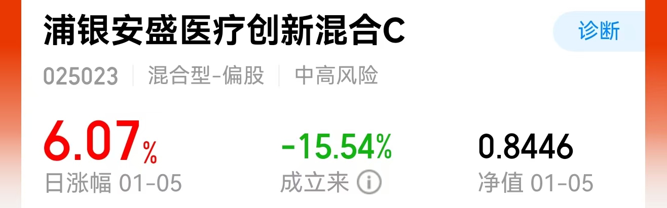刷到一只势头很猛的创新医疗混合基——$浦银安盛医疗创新混合C(OTCFUND|025023)$,昨日大涨6.07%,远远超过了医疗指数的涨幅,从大的布局方向来看,创新药、创新医疗服务、创新诊疗技术、医疗器械等等领域有涉及,成立以来板块持续走低,给了一定坑位去布局,浦银安盛属于A股港股两手抓,板块长期前景向好,26年启动脑机接口设备大规模的生产转向全自动手术流程,后面肯定有修复趋势,目前这个盘子小灵活度及敏锐度会更高,容易跑出超额收益,可以关注一波去坑位布局。