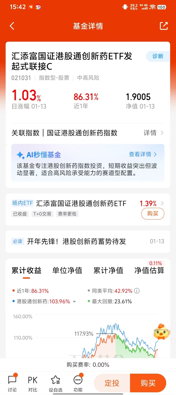 $汇添富国证港股通创新药ETF发起式联接A(OTCFUND|021030)$