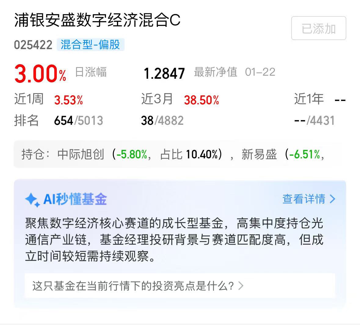 CPO不比商业航天弹性差,浦银安盛数字经济昨日涨3%,坐稳扶好别下车$浦银安盛数字经济混合C$