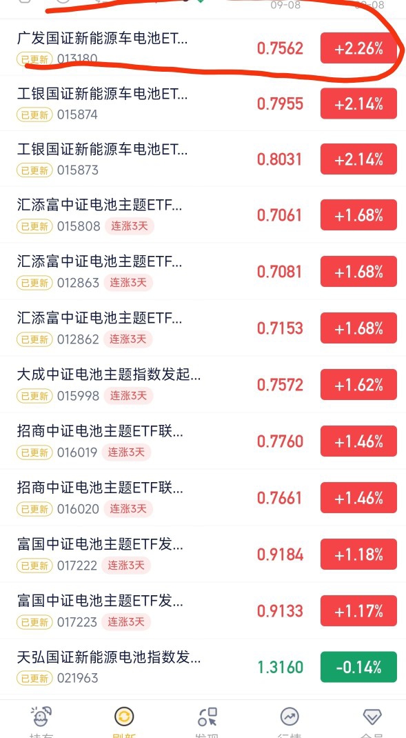 直接起飞!电池板块今天太猛了,$广发国证新能源车电池ETF联接C$一天干到2.26%,还在观望的可以和$易方达国证新能源电池ETF联接发起式A$ 跟一把了,机会不等人