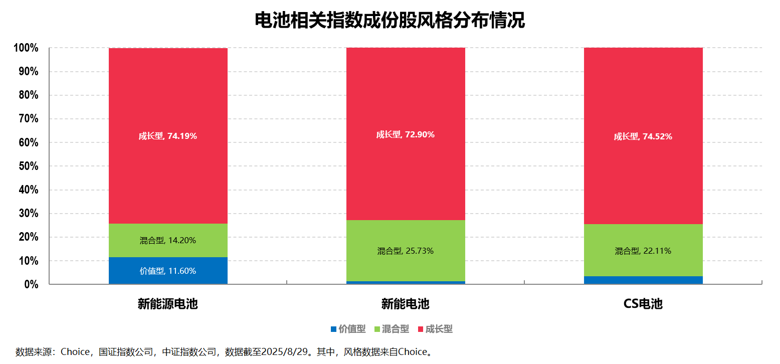 因为主要聚焦于电力设备这个偏成长的板块,三个电池主题指数的成长风格较为显著,这一点应该没啥争议。