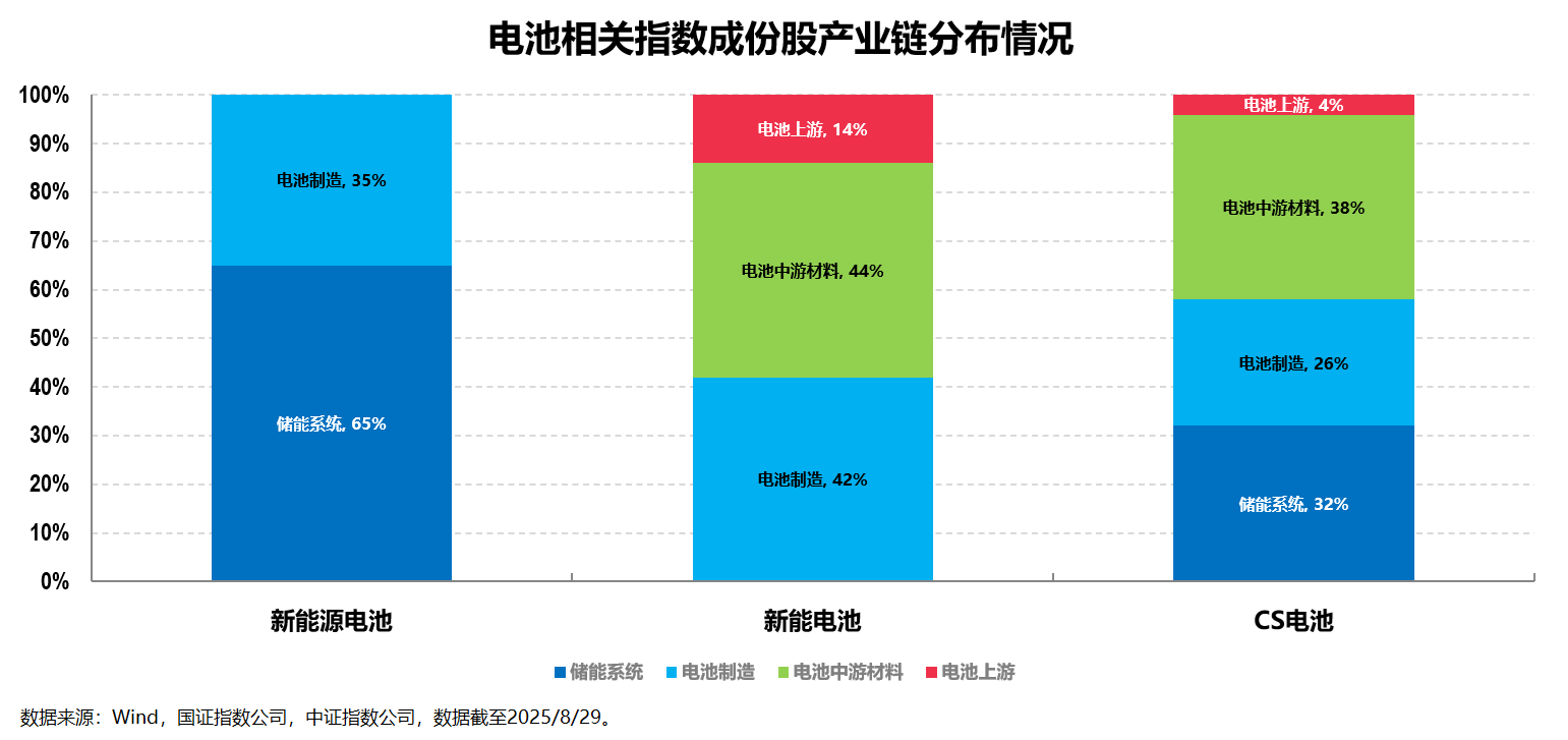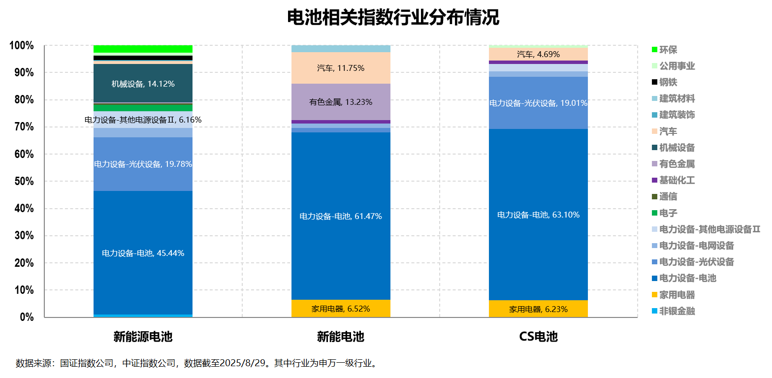 而CS电池则聚焦于动力电池、储能电池、消费电子电池以及相关产业链上下游的上市公司。这一点我们在后续的指数成份股行业分析中也能看到。
