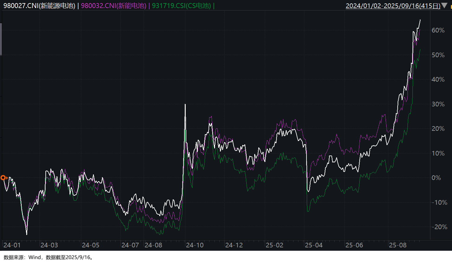 以其中的国证新能源电池指数(980027)为例,截至9月17日,该指数今年以来上涨超过50%(具体为50.17%),自4月8日以来的低点至今更是上涨超过70%(76.68%),领跑整个新能源板块。