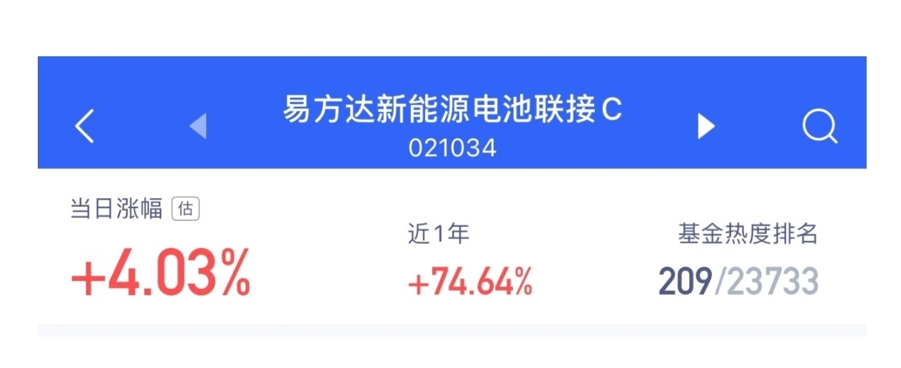 我今天买了一笔$易方达国证新能源电池ETF联接发起式C$ 基金,这个基金跟踪新能源电池指数,投资方向明确,能直接受益于行业发展。现在市场热点轮动快,我不想错过这个核心赛道,所以先买一点放着。新能源电池这个方向,我觉得值得长期关注。
